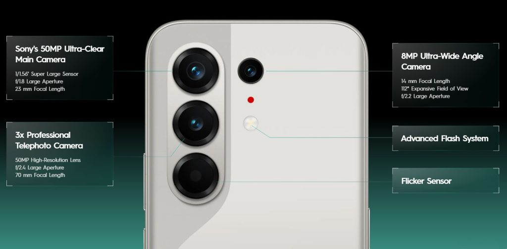 - 50MP Sony Ultra-Clear Main Camera (1/1.56″ sensor, f/1.8)